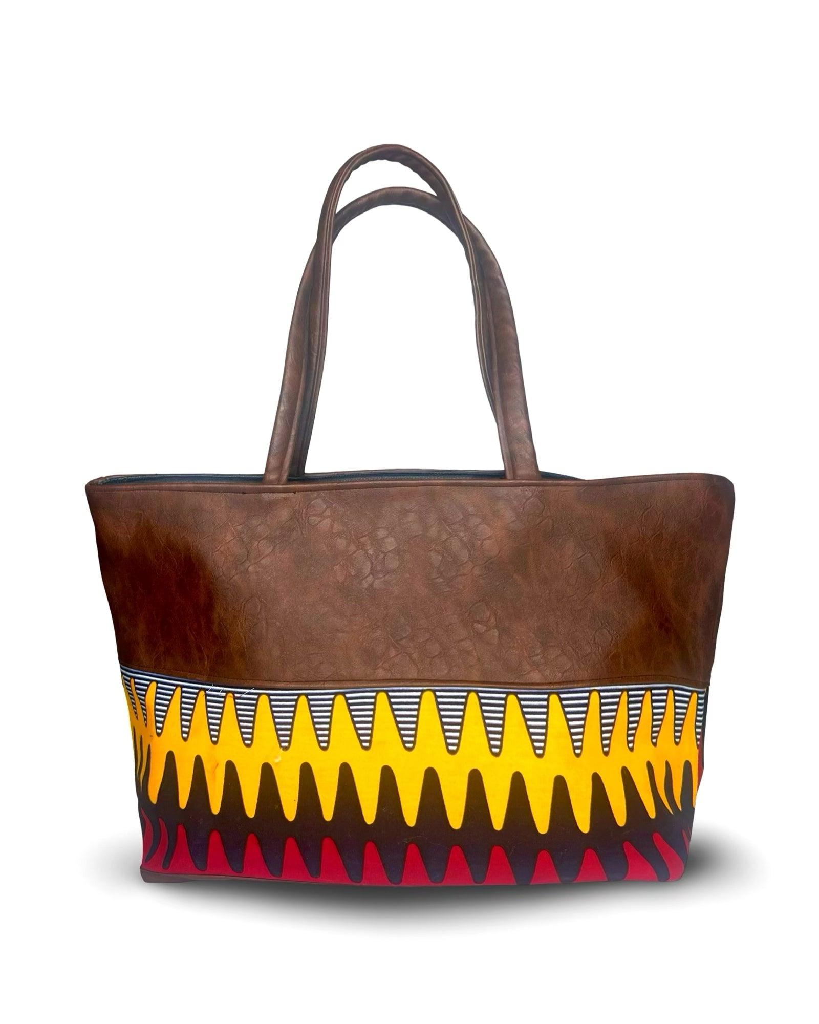 The Obaa Yaa Bag is offered in two distinct sizes to suit your lifestyle. Both versions feature the bold red, yellow, and black zigzag Ankara print — the same vibrant pattern seen in our Obaa Yaa Tote — creating a striking continuity across the collection.